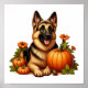 German Shepherd Resting With Pumpkins and Flowers Poster