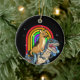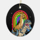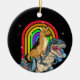 German Shepherd Riding Dinosaur T rex Rainbow Ceramic Ornament