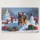 German Shepherd Running in Snow with Christmas Hat Jigsaw Puzzle