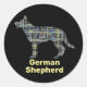 German Shepherd Silhouette Yellow&Black Grid Classic Round Sticker