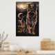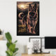 A German Shepherd dog stands proudly against a backdrop of mountains at sunrise. The sun is rising behind the dog, casting a warm glow on its fur. The dog is looking directly at the viewer, with a determined expression on its face. Below the dog is a quote about courage.