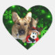German Shepherd, Toy Reindeer, Green Snowflakes Heart Sticker