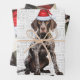An adorable German Shorthair Pointer dog is ready for the holiday season with his Santa hat. This cute Christmas dog is paired with a deep red maroon shades paired with cream and sage green hues in holiday plaid on this set of gift wrap for the dog lover.