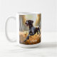 A speckled German shorthair pointer dog runs through a field in this beautiful illustration.