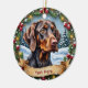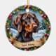 A beautiful, ultra-detailed Christmas ornament design featuring a realistic portrait of the breed centered within a soft, festive winter frame. This elegant design includes pine branches, red berries, and snowflakes against a snowy backdrop, illuminated by warm holiday lighting. The balanced, round composition includes clear space below the dog for customization.