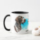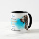 A watercolor portrait of a beautiful German Shorthaired Pointer Dog is the feature on two sides of this mug. Each image is placed on a bright blue splatter background. Between the two images is the text that describes this loyal and playful companion, with "GERMAN SHORTHAIRED POINTER" in black at the bottom. All the text is easily customised to anything you'd prefer so that you may describe your own loyal friend!