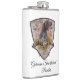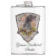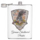 The flask itself is fine. It’s a cheap flask, obviously bought in bulk, however am prepared to overlook that. Given that it is a personalized item, I would have liked to have seen gift boxing instead of the generic packaging. Terrible printing, and/or quality. It’s a cheap, tacky vinyl. It is not cut straight and is also applied in a way that it is overhanging the bottom, causing the glue to catch on items and it will eventually roll and tear, damaging the wrap.