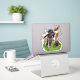 The stick looks amazing. Unfortunately, it would not stick on our suitcase as it was textured. When we found a non-textured (smooth) suitcase, the sticker stuck and looks great. The printing looked awesome.