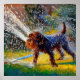 We all love our dogs. They a mankind's best friend. Show the world your passion with this portrait of a German Wirehaired Pointer playing in a sprinkler.