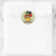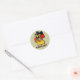 A country of north-central Europe. In this design, the German Coat of Arms, an official emblem is superimposed on the flag filled map of the country.