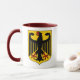 The coat of arms of Germany displays a black eagle (the Bundesadler "Federal Eagle", formerly Reichsadler "Imperial Eagle") on a yellow shield (Or, an eagle displayed sable). It is a re-introduction of the coat of arms of the Weimar Republic (in use 1919–1935) adopted by the Federal Republic of Germany in 1950. The current official design is due to Tobias Schwab (1887–1967) and was introduced in 1928.