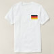 The front of this t-shirt bears a small German flag with its familiar black, red and yellow horizontal bands, while the back displays a relief map of Germany. Available on t-shirts, sweatshirts, polos, long-sleeves and more.