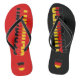 Germany Flag Superb Patriotic Flip Flops with the inscriptions "Germany" infused with the pattern and the colours from the Germany flag covering the majority of the left and right flip flop. Small Escutcheons (shields) infused with the pattern from the Germany national flag are placed on the bottom of the each flip flop. Background is covered in the combination of the Germany national flag colours. Germany Flip Flops are the ideal partner for the hot summer days and the charming gift. © 2022 CountriesOfTheWorld