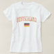 "Germany" type and national flag in a machine washed style. The word GERMANY is set in a collegiate style typeface in an arc over an image of the German flag. The flag of Germany is a tricolour consisting of three equal horizontal bands displaying the national colours of Germany: black, red, and gold. The flag was first adopted as the national flag of modern Germany in 1919, during the Weimar Republic. Apply this design to any shirt. Remember the design may not work on all shirt styles and colours. The design position may shift depending on the shirt style chosen. Click the "Customise It" button to adjust the design position to your liking.