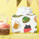 Fun pattern of German icons, like, girls dirndl dress, german beer, pretzels, flag inside the shape of the country of Germany, and more.