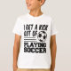 I Get a Kick Out Of Playing Soccer cute design for a boy or girl. It features a soccer ball. Great for your own son or daughter who loves the game of soccer, or as a sport themed gift.