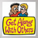Decorate your classroom, office, or community center with this get along with others poster. This vibrant wall art features a hand drawn cartoon of two diverse friends in a supportive embrace, serving as a constant visual reminder of kindness and unity. The bright yellow background and playful purple lettering make the inclusive message pop, making it an ideal choice for school counselors and teachers promoting anti-bullying initiatives. Use this high quality print to create a welcoming atmosphere that encourages social harmony and teamwork among students and visitors alike.