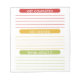 Everyday take time to organise yourself with this organisation notepad. Right out your tasks that need to get completed, get started and tasks you need to think about. Creative task list notepad has three colourful text boxes where you can customise your own text to fit your own organisation life style. Great for students, music practice, honey to list, projects, scheduling and just for jotting down ideas and notes.