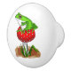 Cute hand drawn frog art. Green frog on a whimsical red mushroom.