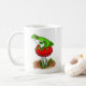 Cute hand drawn frog art. Green frog on a whimsical red mushroom.