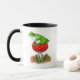Cute hand drawn frog art. Green frog on a whimsical red mushroom. Back of coffee mug says, "Get Froggy with it" but you can edit that text or remove it.