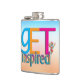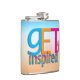 The flask itself is fine. It’s a cheap flask, obviously bought in bulk, however am prepared to overlook that. Given that it is a personalized item, I would have liked to have seen gift boxing instead of the generic packaging. Terrible printing, and/or quality. It’s a cheap, tacky vinyl. It is not cut straight and is also applied in a way that it is overhanging the bottom, causing the glue to catch on items and it will eventually roll and tear, damaging the wrap.