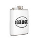 The flask itself is fine. It’s a cheap flask, obviously bought in bulk, however am prepared to overlook that. Given that it is a personalized item, I would have liked to have seen gift boxing instead of the generic packaging. Terrible printing, and/or quality. It’s a cheap, tacky vinyl. It is not cut straight and is also applied in a way that it is overhanging the bottom, causing the glue to catch on items and it will eventually roll and tear, damaging the wrap.