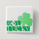 Modern design with typographic letters: "Get Lucky" (green and transparency digital effect) + a big half-transparent clover with small shamrocks inside and white background. Perfect square button for St Patrick. Matching products.