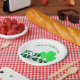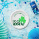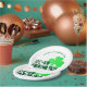 Original and unusual design for St Patrick's Day with a large clover (a lot of small clovers into the shamrock with transparency effects) + Large "GET LUCKY" in dark green and customisable Happy St Patrick's Day. Design on paper plate. Available with the same design with light green. Matching paper plate and more...