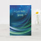 This contemporary card blends soothing shades of navy blue, green, and light blue, featuring abstract circular accents towards the bottom. With a modern script, "Get Well Soon" graces the top, offering a message of comfort and support. Perfect for professional settings, this card extends heartfelt wishes for a swift recovery to colleagues or clients in need of a boost. Let your gesture speak volumes with this elegant expression of care and well-being.