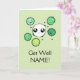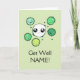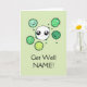 Sad cute white blood cell drawing surrounded by cute green smiling virus particle drawings with fangs and frilly edges, all surrounded by antigens on a green background, "Get Well [NAME]!" or your choice of text printed below.
