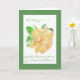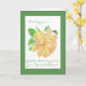 A pretty Get Well card for someone with back problems, with a full-blown golden yellow 'Dreaming Spires' climbing rose and a soft green border, from a watercolour painting by Judy Adamson. Please feel free to personalise the inside message.
