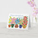A Hip Surgery Speedy Recovery card with a row of pots of brightly coloured flowers, from a handpainted paper collage by Judy Adamson. Please contact me through my store if you would like the front cover text changed and the inside is left blank for your own message.