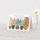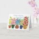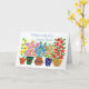 A Surgery Speedy Recovery card with a row of pots of brightly coloured flowers, from a handpainted paper collage by Judy Adamson. Please contact me through my store if you would like the front cover text changed and the inside is left blank for your own message.