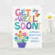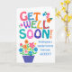 A bright and cheerful Get Well Soon from an accident greeting card with colorful, patterned lettering and flowers. There are polka dots, chevrons and stripes in the 'Get Well Soon' lettering and 'Wishing you a speedy recovery from your ACCIDENT is in blue. Please feel free to personalize the inside message if you wish.
