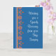 A pretty Get Well Card for someone who is having Hip Surgery, with a border pattern of Orange, Pink and Blue Flowers and a Rangoli motif, from a hand-painted paper collage by Judy Adamson. Part of the Posh & Painterly 'Rangoli' collection.