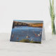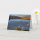 A beautiful notelet / card showing a view of the River Avon at Bantham, on the south west coast of England. Dusk is settling in for the night and the moored sail boats and launches bask in the last rays of the dying day - a typically English river scene during late summer.
