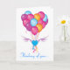 This get well soon card features multi-coloured balloons in the shape of a heart.