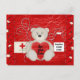 Get well soon teddy bear with first aid kit and cough syrup postcard. Easily add your own message on the back