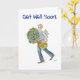 A 'Get Well Soon' card with a young man bringing fruit, flowers and magazines to someone who is sick; from a watercolour painting by Judy Adamson. The inside is left blank for your own message.