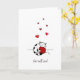 This card features a cute black and white cat hugging a red ball of yarn. There are red hearts floating above his head. The front of the card features the writing, "Get well soon!" while the inside is blank. The perfect card for someone who has been unwell and needs some cheering up.