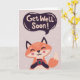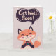 Get Well Soon Cute Fox with Coffee Greeting Card