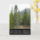 This design features a photo of a forest scene with coniferous trees, along with a mountain in the background. It also features a message like "Get well soon, Jefferson! We need to go camping!" on the front, where the name ("Jefferson") can be customised. The inside contains a message that can be customised.