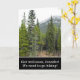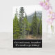This design features a photo of a forest scene with coniferous trees, along with a mountain in the background. It also features a message like "Get well soon, Jennifer! We need to go hiking!" on the front, where the name ("Jennifer") can be customized. The inside contains a message that can be customized.
