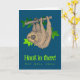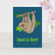 A cute sloth to cheer up someone who is sick. This funny brown sloth is clinging to a branch with leaves, hanging upside down. The message says: hang in there! Get well soon. Inside there is a message which you can easily change / customise if you wish.