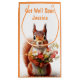Cute image of a squirrel holding a bouquet of flowers in its paws with the text Get Well Soon - image generated with the help of AI. You can easily personalise this gift bag with your own text and name.