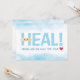 This cute design is a great way to remind your loved one you care when they are under the weather. Featuring watercolor bandage with eyes and smile, the featured message is "HEAL! Sending healing hugs to your heart with HEART illustration)" Background is soft blue watercolor. Inside can be customised with your own message.