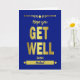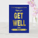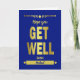 Say get well in style with this fabulous typography card with gold lettering on a blue background. A lovely cheerful way to send your thoughts and get well wishes to a member of the family, friend or work colleague .Text can be customised then personalise with a name and message.