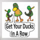 Get Your Ducks In a Row design features hand drawn ducks standing in line with a speech caption below - a humorous duck expression for those who need to get organized.