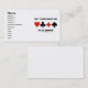 Bridge players and bridge club owners will enjoy introducing themselves with this positive, upbeat business card featuring the four card suits along with the bridge saying "Get Your Mojo On Play Bridge". Sound bridge advice from all avid bridge players!